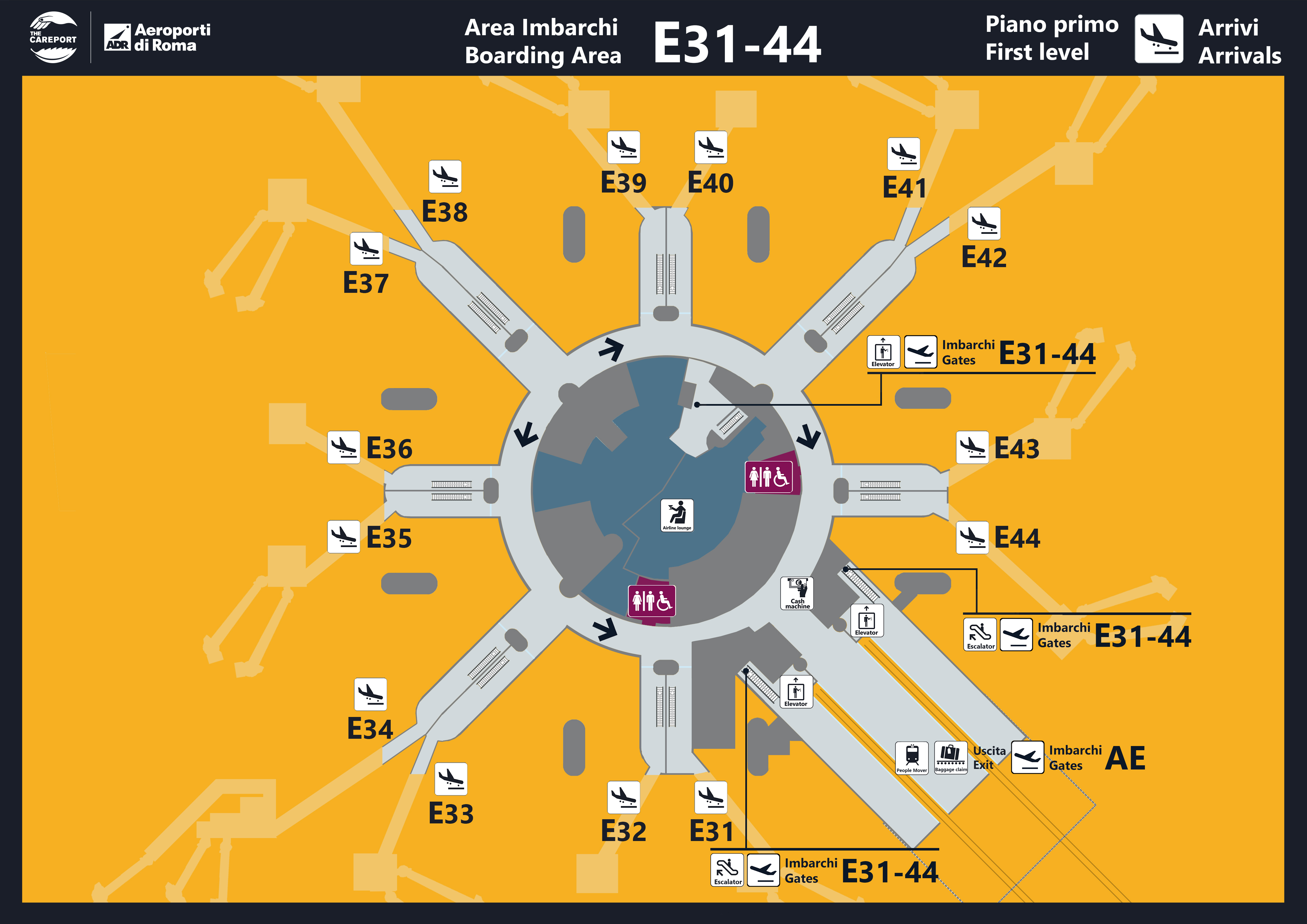 It is open daily from 06:10 to 23:30 and can be accessed by all passengers from any airline company in Fiumicino, by business class flyers and by holders of partner airline frequent flyer cards.