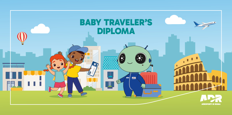 Aeroporti di Roma offers the opportunity to obtain the “Baby Traveller’s Diploma”, a certificate celebrating a child’s first journey from Fiumicino Airport. A special keepsake dedicated to children and to all parents who wish to make their child’s first flying experience truly unforgettable.